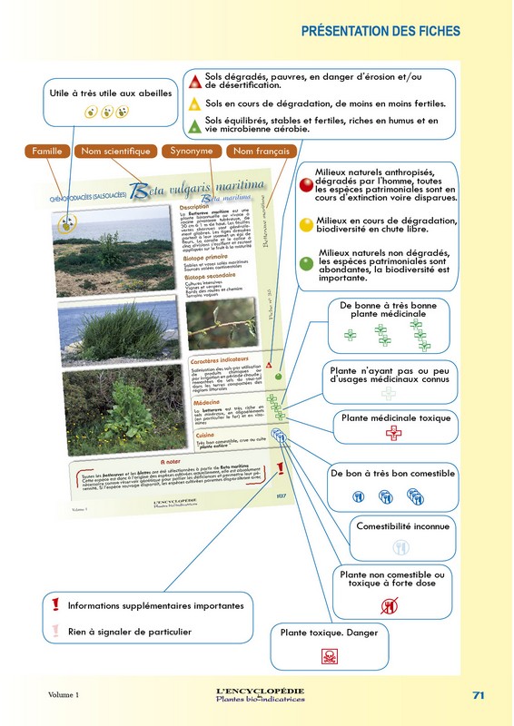 Elle comporte trois volumes qui permettent de comprendre le principe de la méthode et de déterminer plus de 750 espèces de plantes . Chaque espèce est décrite et illustrée par de nombreuses photos ; les caractères indicateurs, les usages alimentaires et médicinaux sont présentés.